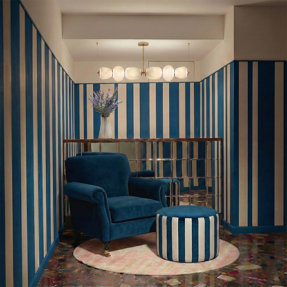Das Oliver Hocker-Modell ist durch einfache Eleganz und imposante Form perfektioniert. Es ist maskulin ohne strukturelle Strenge, erinnert uns an einen Sommertag, ein leichtes Gefühl, absoluten Komfort. Die Designer von House of VLAdiLA haben ihm ein ausgewogenes Muster verliehen, bei dem Streifen eine stilistische Wahl sind, die für jeden zugänglich ist. In jedem Raum, unabhängig von der Anordnung, bringt das Oliver Hocker-Modell die Einfachheit des Minimalismus in einer reduzierten und frischen Farbpalette, perfekt, um zum Mittelpunkt eines Raumes zu werden. Der Schlüssel zu einem einzigartigen und persönlichen Zuhause. Das Oliver Hocker-Modell ist mit reichhaltigem Samt überzogen, der sich extrem fein anfühlt. So erhält das Stück eine elegante und distinguierte Ausstrahlung, die es in jeder Art von Innenraum hervorstechen lässt. An der Grenze zwischen funktional und ästhetisch ist dieses Stück bequem und trägt zur Erfahrung eines einzigartigen und persönlichen Zuhauses bei. Willkommen Zuhause, ein Raum faszinierender Kuriositäten und künstlerischer Erlebnisse. Hier ist jedes Objekt voller Geschichten. Nichts ist zufällig. Die Grenzen der Zeit verschwimmen, denn jedes Stück führt Sie entlang des Fadens der Erinnerungen zurück zu sich selbst. Jede Kreation entsteht aus einem Raum des Experimentierens. Denn Kunst ist ewig mit dem spielerischen Geist verbunden. Und mit Neugier. Wie ein Puzzle fügt sich jede Kreation unserer Künstler zu einem Ganzen zusammen. Jedes Stück bringt Sie näher zum absoluten Komfort. Tapeten, Textilien und Möbel, Design für Design, Textur für Textur, all das macht die Polsterung Ihres Raumes aus. Jenes Zuhause, einzigartig und persönlich, das wir alle suchen.